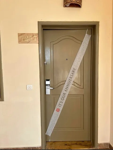 Friends, couples, and groups were celebrating anniversaries, weddings, birthdays, bachelorette parties, or on a relaxing getaway. The resort helped with celebrations by putting banners on the room doorway.