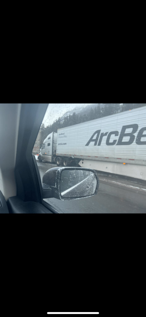 Instead of an interesting fact about myself, I need to talk about an interesting fact I learned. I’ve done some research on this, cause this just confuses me. Chaining tires. Have you heard of chaining tires? If you have, where are you from? Today we watched dozens, and I mean dozens of 18 wheelers pull over to chain their trucks. This causes a bunch of traffic, and when someone doesn’t chain their tires, it can cause a huge accident and also they can be fined. Chaining your tires helps with traction and to get better control.