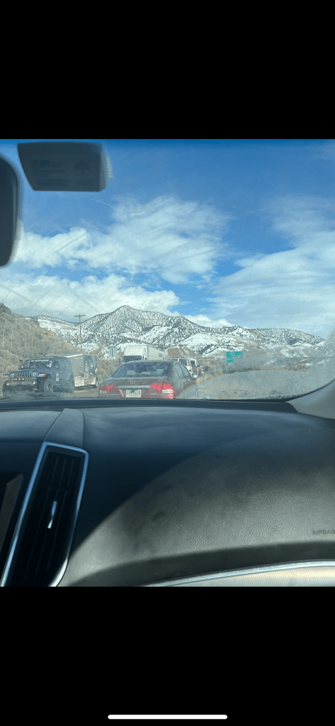 dreams) come true. We were supposed to go to the ice castles in Midway, Utah, but the world had different plans for us. The world has plans for us to sit in traffic, find a lot of different road closures, find 3 different routes, and work on our trivia. The ice castles will have to wait. Nick and I have beef with Colorado now, (just kidding it’s still beautiful). On the happy note, we will be exploring Salt Lake City before our drive tomorrow.