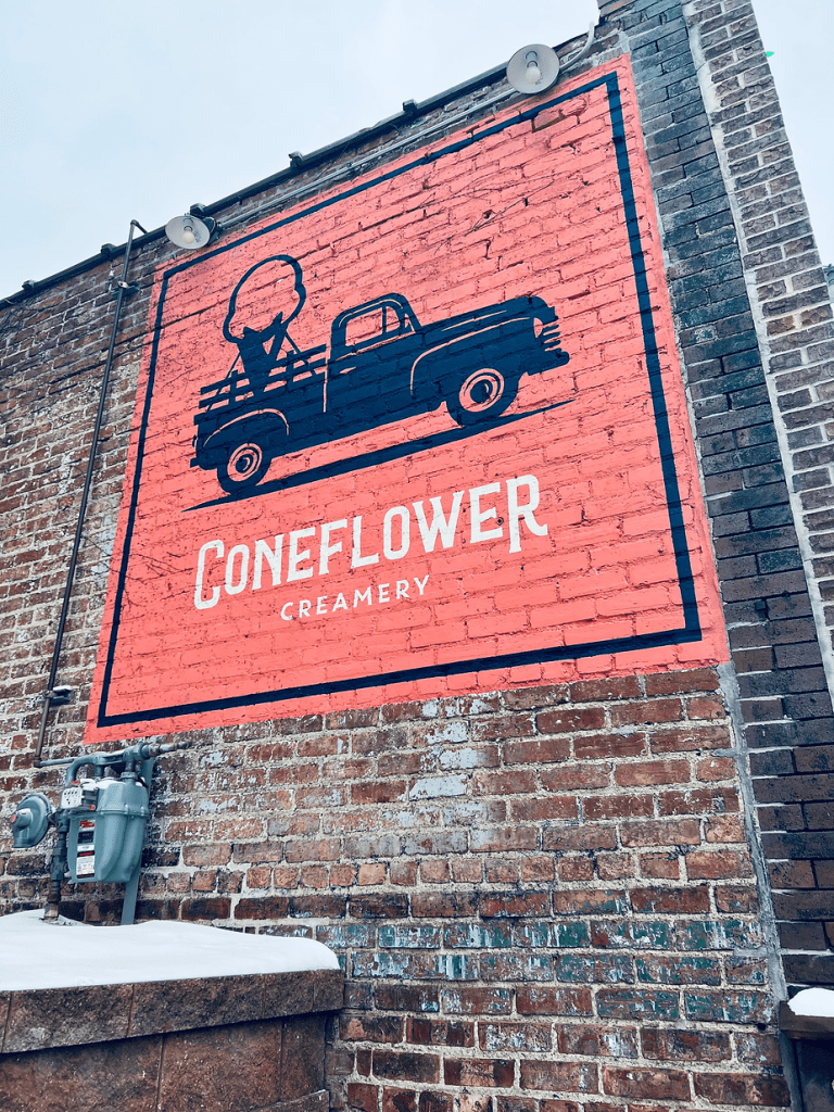 Yes, that’s about it. Windmills and fields. That’s about it. At least we made it to Lexington, Nebraska. We made a stop in Omaha, Nebraska. We saw some cool murals, and had some delicious ice cream in 10 degree weather at a local spot. Coneflower creamery was definitely worth stopping in Omaha.