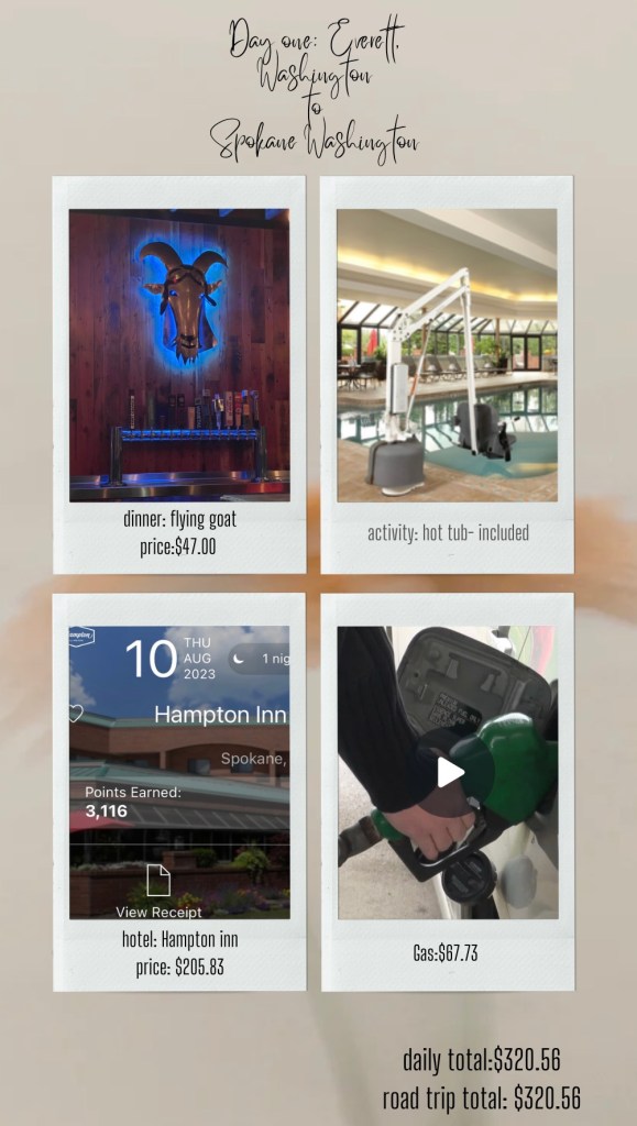 Now, let’s get to traveling on a budget. I’ve talked about travel pay and duplicating expenses in the past, but I haven’t talked about expenses of traveling from one destination to another. It can get pretty expensive to travel from one destination to another. Your travel company will include reimbursements in your contract (if they don’t, make sure you ask before you sign! TIP: you can even ask after the fact) Unfortunately, they won’t cover all costs of relocation. Oh, how I wish! Other reimbursements I’ve seen are scrubs, parking, certifications, medical expenses for onboarding (tb test, physical, vaccines, drug tests), and other various things. I’ve noticed, the worst thing you can do is ask and they say no… For this contract, we were reimbursed $500.00 for relocation alone and I was also reimbursed for hospital monthly parking and scrubs. This $500.00 can go towards gas/hotels/flights for however you’d like to use to relocate to your new assignment. Nick and I have goals on our road trips to eat somewhat healthy meals and stay in safe clean hotels. We also have a goal of at least doing an activity a day if possible. With these goals in mind, there is a cost. Ok, do you have a number in your mind?