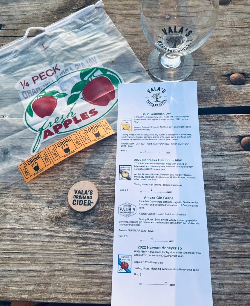 Vala’s was offering a sunset orchard and cider tasting. When I was looking up different festivals in Nebraska, I found this event and mentioned it to nick. We thought it was interesting and decided to book it. It seemed like too good of a deal and thought there was some kind of catch, but decided it would be a fun date night.