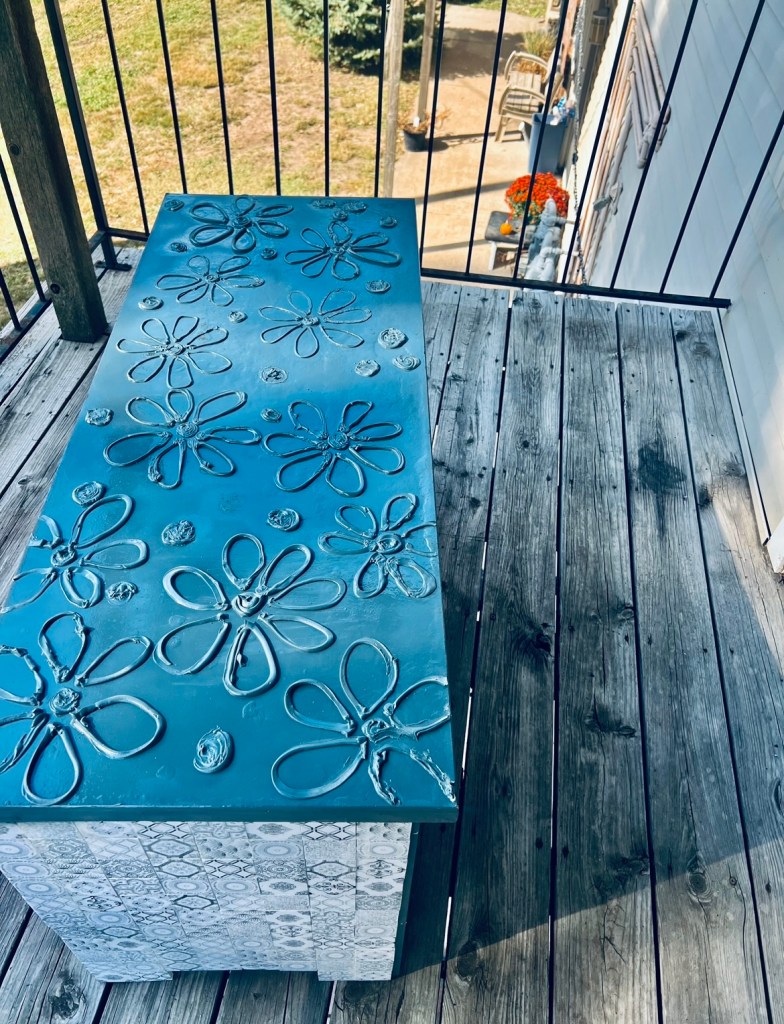 I would like to say I’m outdoing myself with this dresser just like Gather outdid themselves. At this point, Nick is hoping we are going to be able to use it… I tell him it’s not funny. I tell him I am a persistent person, but really I am stubborn, and don’t give up! Sometimes, he likes to remind me… there is a reason things are on sale. The dresser needed a lot more work than I thought. I started researching wood filler, and how to go about doing this. I started doing wood filler on the top of the dresser. After doing the wood filler, I sanded it all down. Part of the problem I think is that it’s not real wood… I started using spray paint instead of real paint. That was a whole other issue. I wish I used real paint. I started adding some texture to it recently. I’m hoping that it’s going in the direction I like. I do have to say, when I went to Lowe’s and I asked the guy a question and he said, “who will be helping you?” I did find it a little insulting! I responded with, “I’m doing this project solo.” I think he caught on.