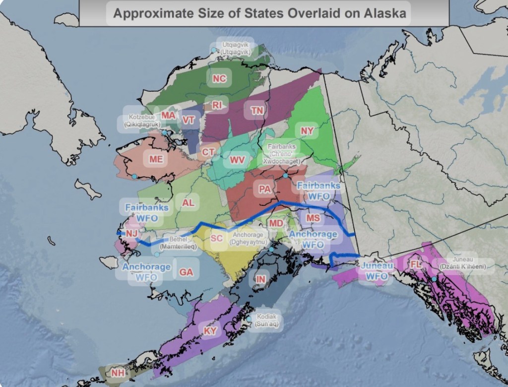 We all know Alaska is big… but how big? It could fit 19 other states. Check out this map below, It impacts nursing care a lot for many reasons. When we discharge a patient from the hospital, it may take a person 24 hours to go home (often by plane, boat, or a long drive). Therefore, it makes discharges difficult, and causes a crowded hospital.