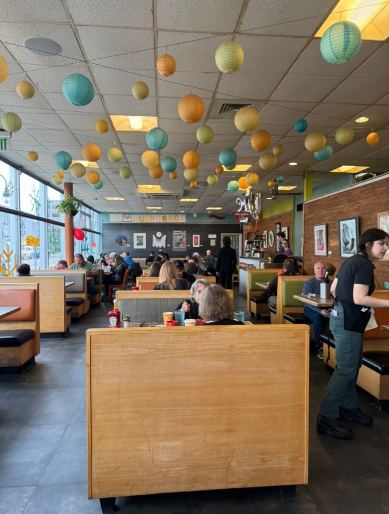 We are looking forward to reviewing this Alaska apartment after the contract ends. So far, it’s been a really positive experience! Sunday after moving in, we had breakfast at our favorite local Anchorage restaurant, Snow City Café. It’s such a treat, and a great Anchorage find. We are now walking distance from our apartment.