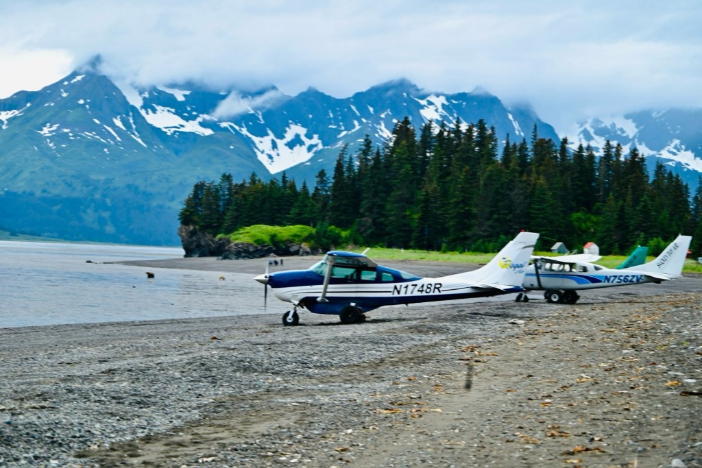 A flight seeing tour allows for an overall rounded experience. During the flight, you can see the wildlife, along with the mountains, glaciers, and water. This is the option we opted for. The plane landed on the beach during low tide.