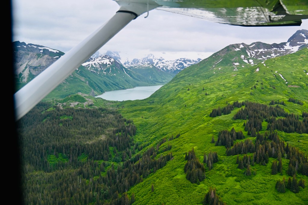 The plane fits five passengers including the pilot. The claustrophobia in me came out a little bit. The pilot was informative, and we felt safe throughout our journey to the park. He was able to point out different areas along our flight, including a black bear (they don’t see them a lot there!) and a pod of beluga whales.