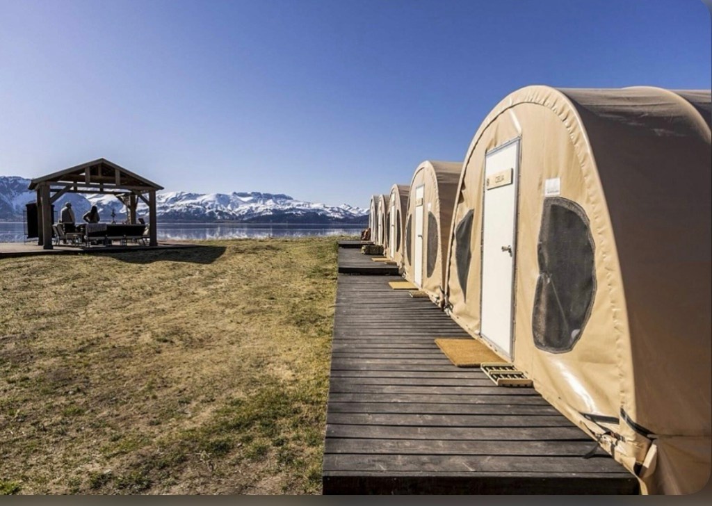 Glamping site right on the beach protected with bear storage. Front row bear viewing. The price may kill you though