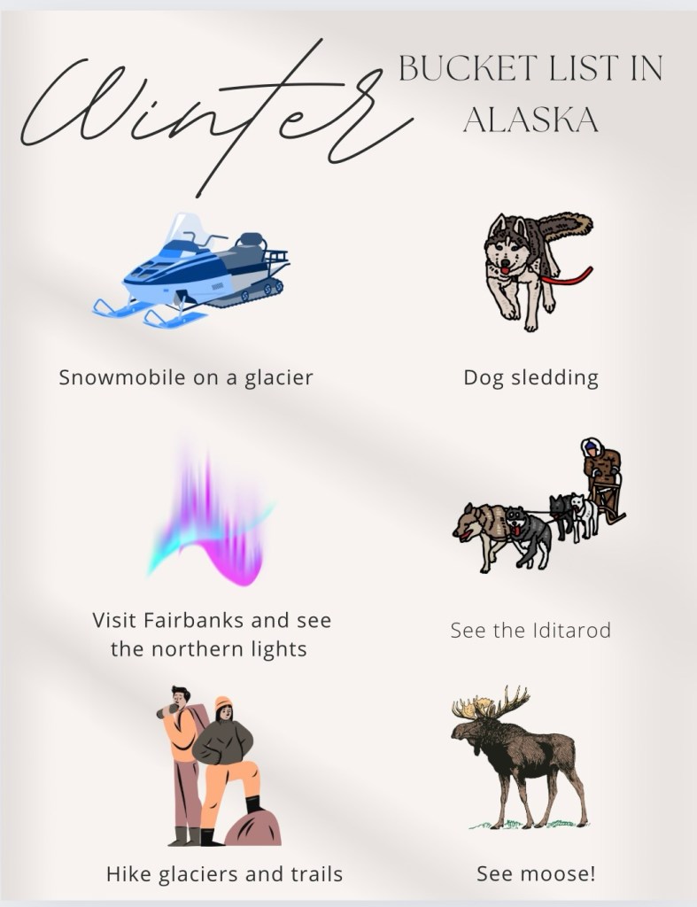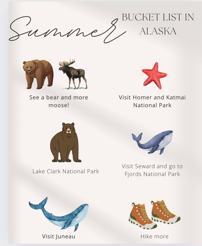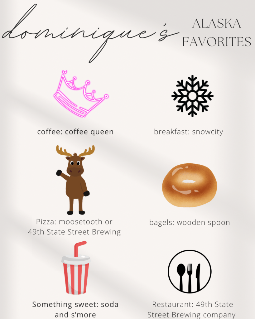 My husband and I are very busy people… On our way to our next assignment, we always make a bucket list for our assignment. It’s honestly one of my favorite things to do. I really enjoy suggesting things to future renters and readers. Follow my instagram for our adventures throughout the past 2.5 years at @travelingbeebryantRN (I can’t believe it’s been 2.5 years!!) See our condensed bucket list below for our Alaska assignment! ( How many places can you check off?!) We also included some great food, coffee, and drink places in the surrounding area.