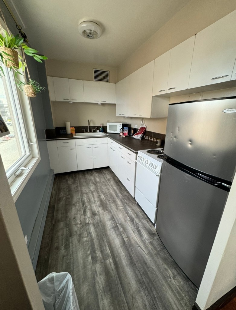 The apartment was nicely furnished and had the essential kitchen appliances. If you have read my previous review on other apartments, you know that Nick and I prefer not a lot of clutter. This apartment did great at that, in which, the kitchen cabinets weren’t full of useless items.
