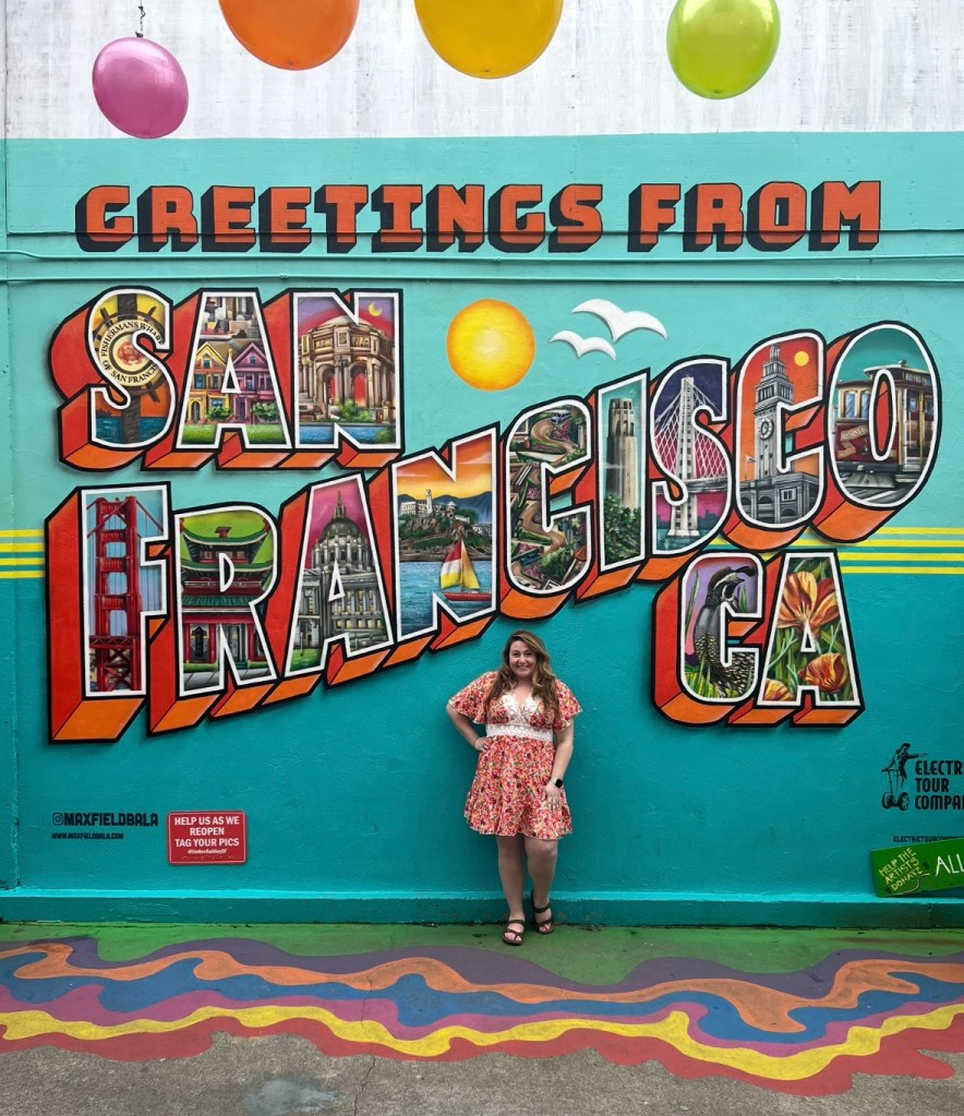 Fisherman’s Wharf is a great spot to enjoy indoor and outdoor dining, unique shops, bay cruises, fun family attractions, and different museums. The wharf is the center of San Fransicos maritime history. Catch a boat to Alcatraz or a sunset cruise! One of my favorite parts of Fisherman’s Wharf is Umbrella Alley. If anyone knows me, they know I LOVE a beautiful local mural. Check out some local murals we saw!