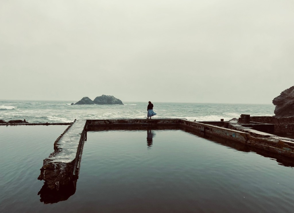 Just beyond the cliff house in Lands’ End of the Golden Gate Recreational Area are the remains of the Sutro baths. Sutro Baths were a large privately owned public saltwater swimming pool in the 1890s. It’s known for beautiful sunsets. Unfortunately, when we went it was very cloudy, but it was still beautiful.